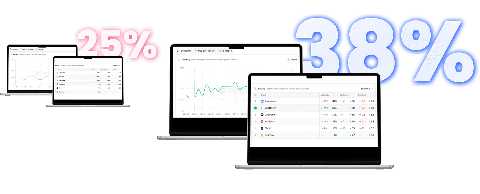 Visibility Boost: Exacaster’s average visibility skyrocketed from 25% to 38% in just one month of implementing our services—marking a significant leap in their online presence.