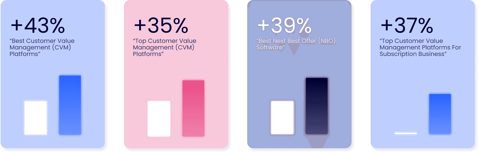 “Top Customer Value Management (CVM) platforms” skyrocketed from 58% to 97% visibility.