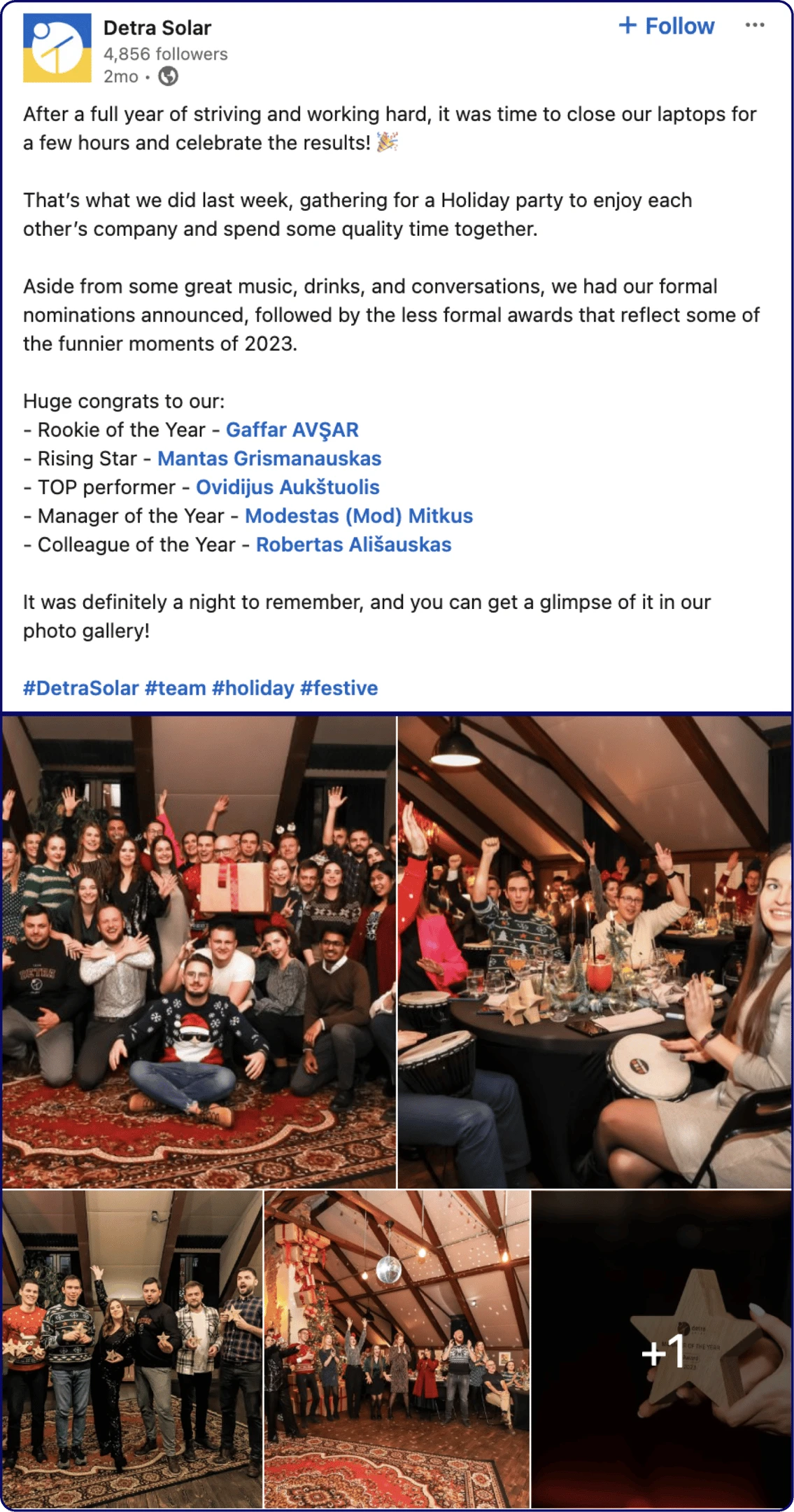 Throughout our work together, we’ve balanced more technical posts with content reflecting the team's culture: we’ve shared industry news and updates, relevant reports, attendance at various solar events, site visits, employee quotes, team-building activities and celebrations, and more.