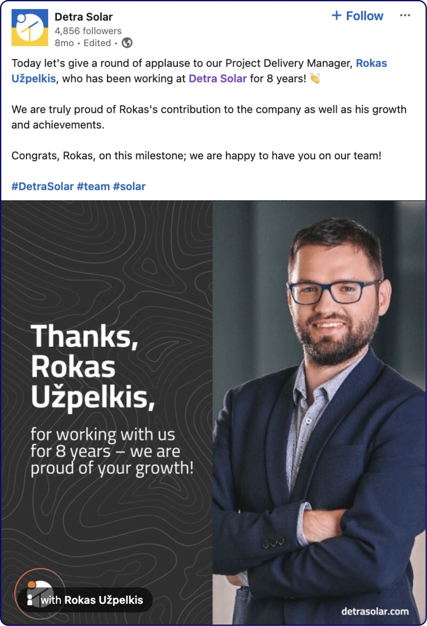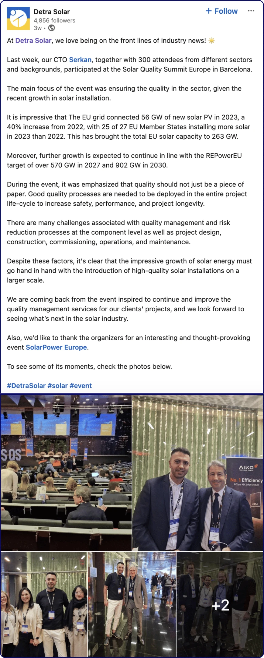 With the solid foundation set, Detra Solar is now continuing to grow its brand awareness on LinkedIn itself.