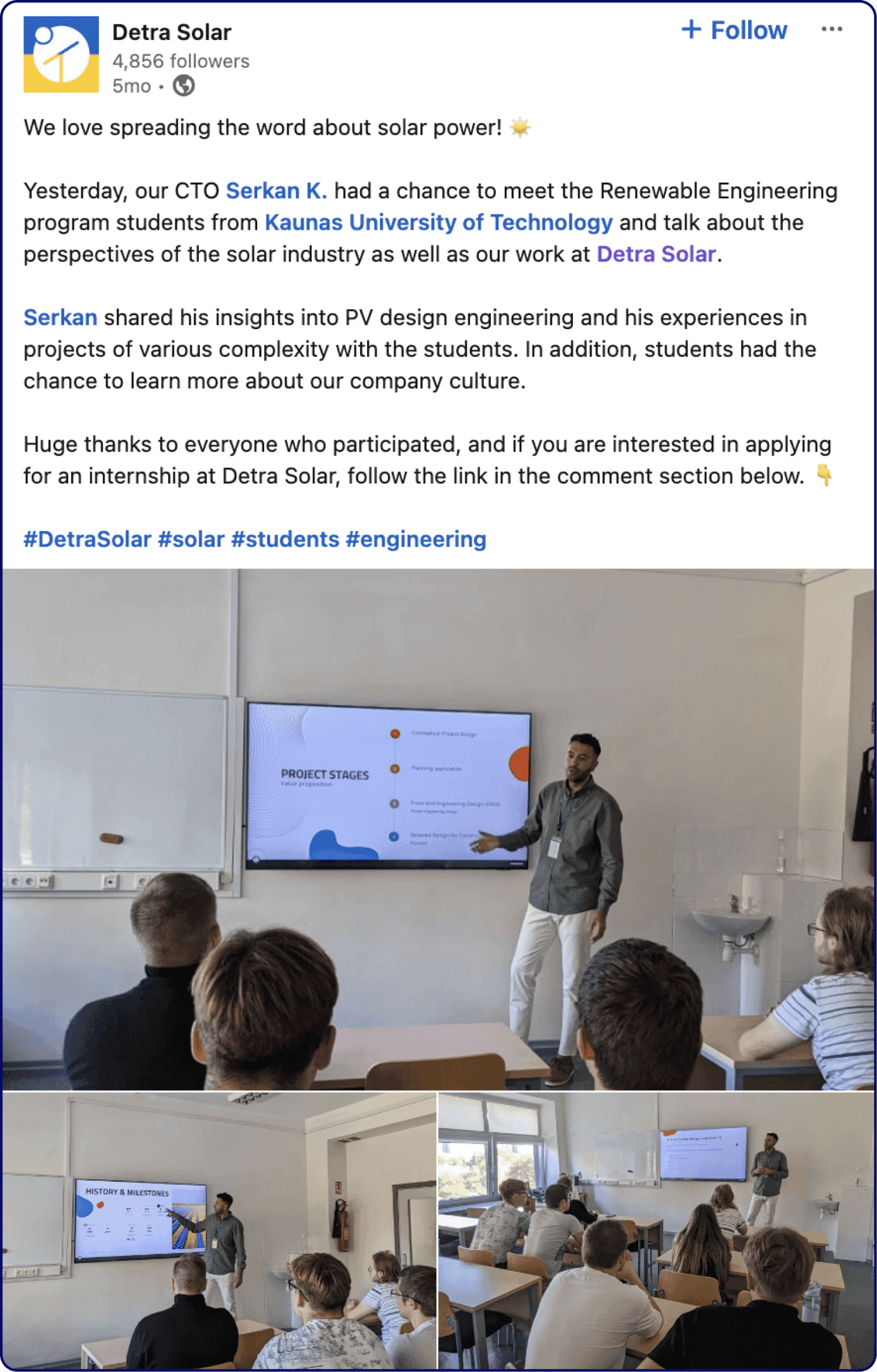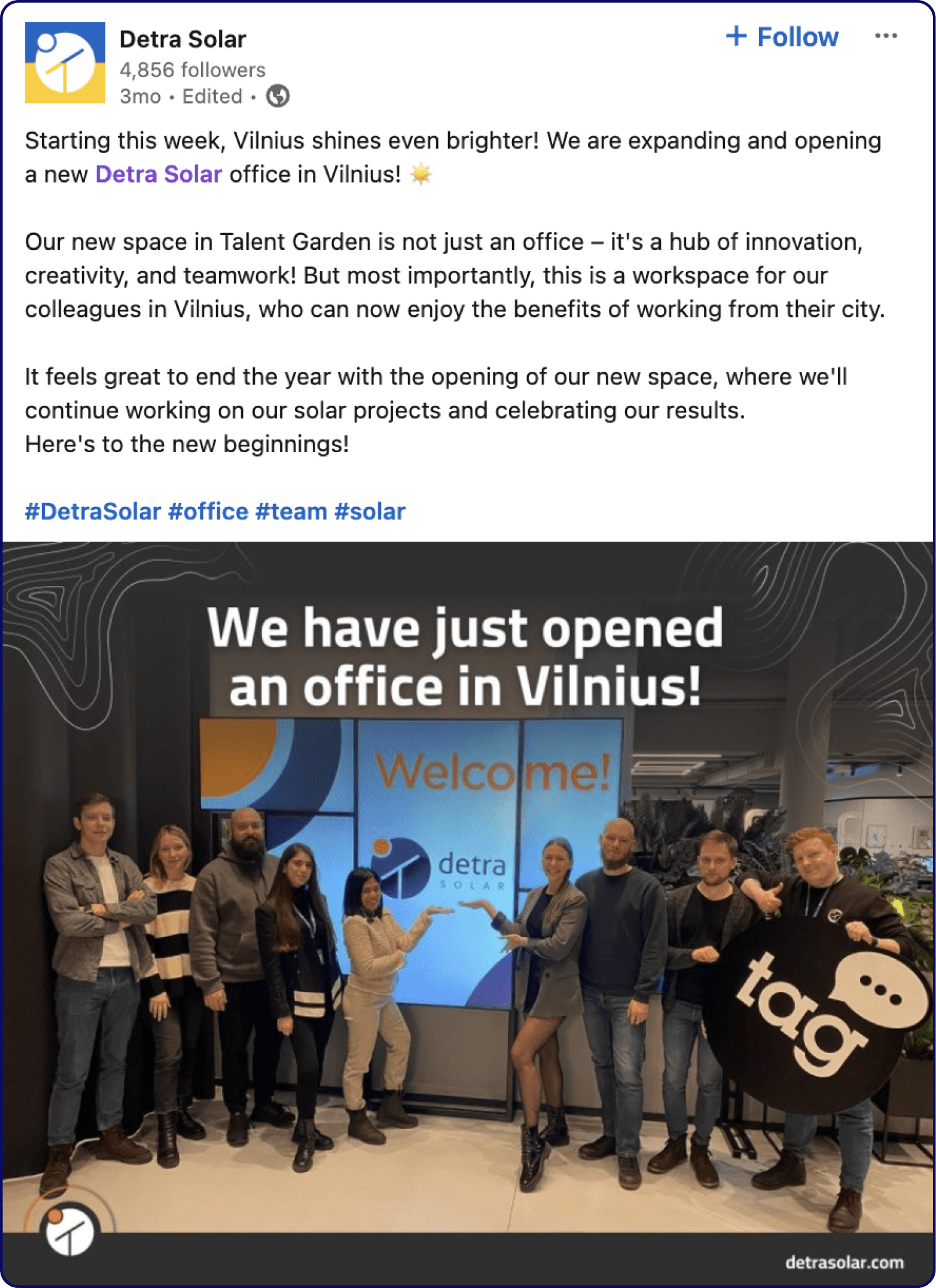 Prior to starting to work with us, Detra Solar already had their LinkedIn company page, but the communication was not consistent.